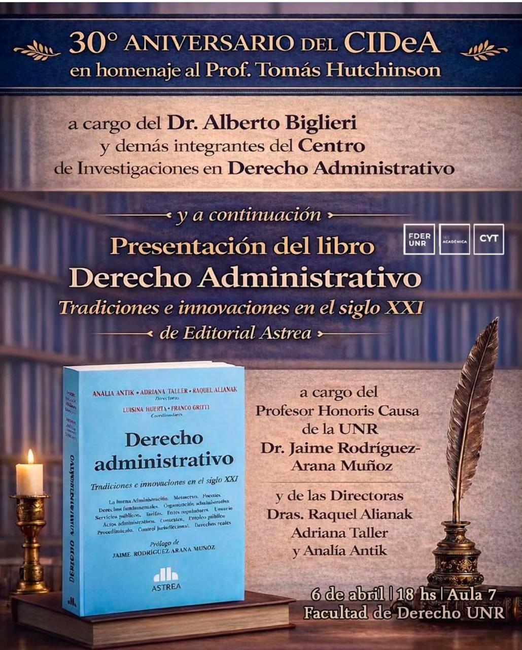 En el marco del 30 Aniversario del CIDeA, y en Homenaje al Profesor Tomás Hutchinson estaré en abril en la Facultad de Derecho Universidad Nacional de Rosario.